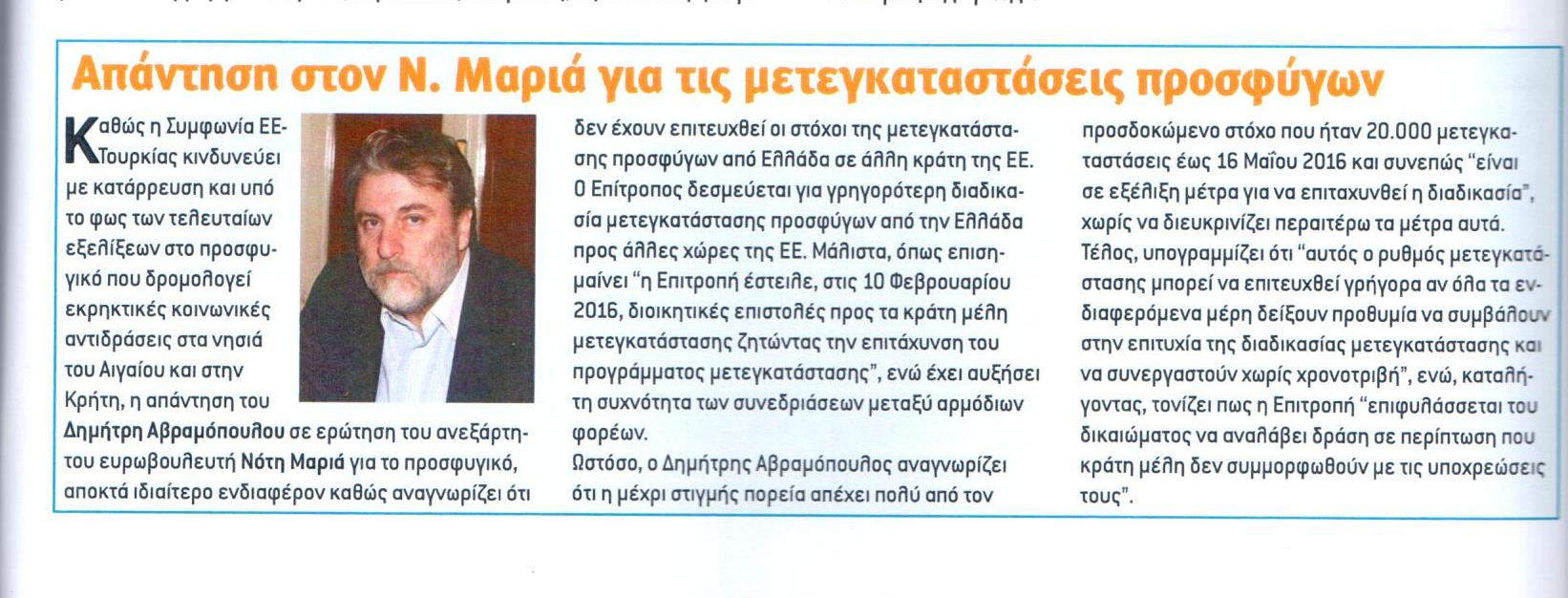 Έγραψαν: «ΒΟΥΛΗ ΚΑΙ ΕΥΡΩΒΟΥΛΗ ΑΥΓΟΥΣΤΟΣ 2016» (Απάντηση στον Ν.Μαριά για τις μετεγκαταστάσεις προσφύγων)