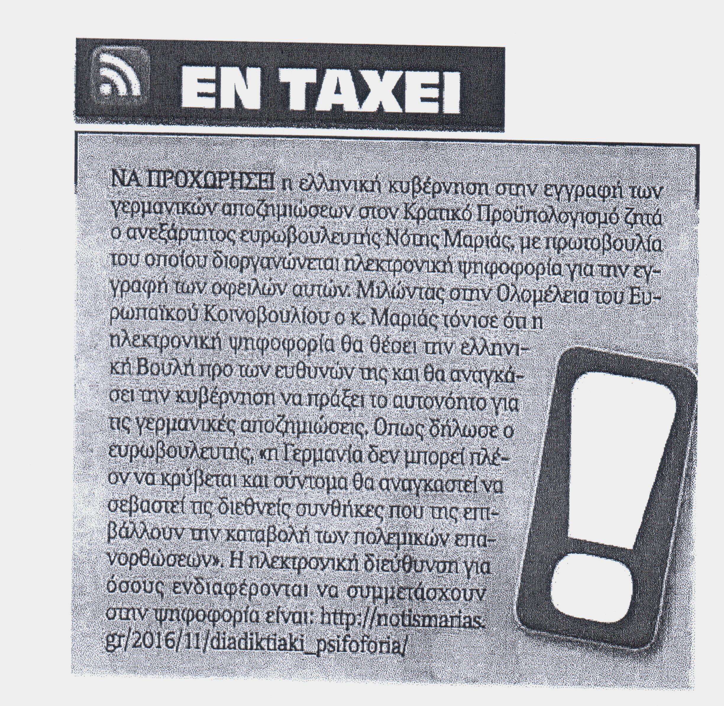 Έγραψαν: «Δημοκρατία» 25/11/2016 (γερμανικές αποζημιώσεις)