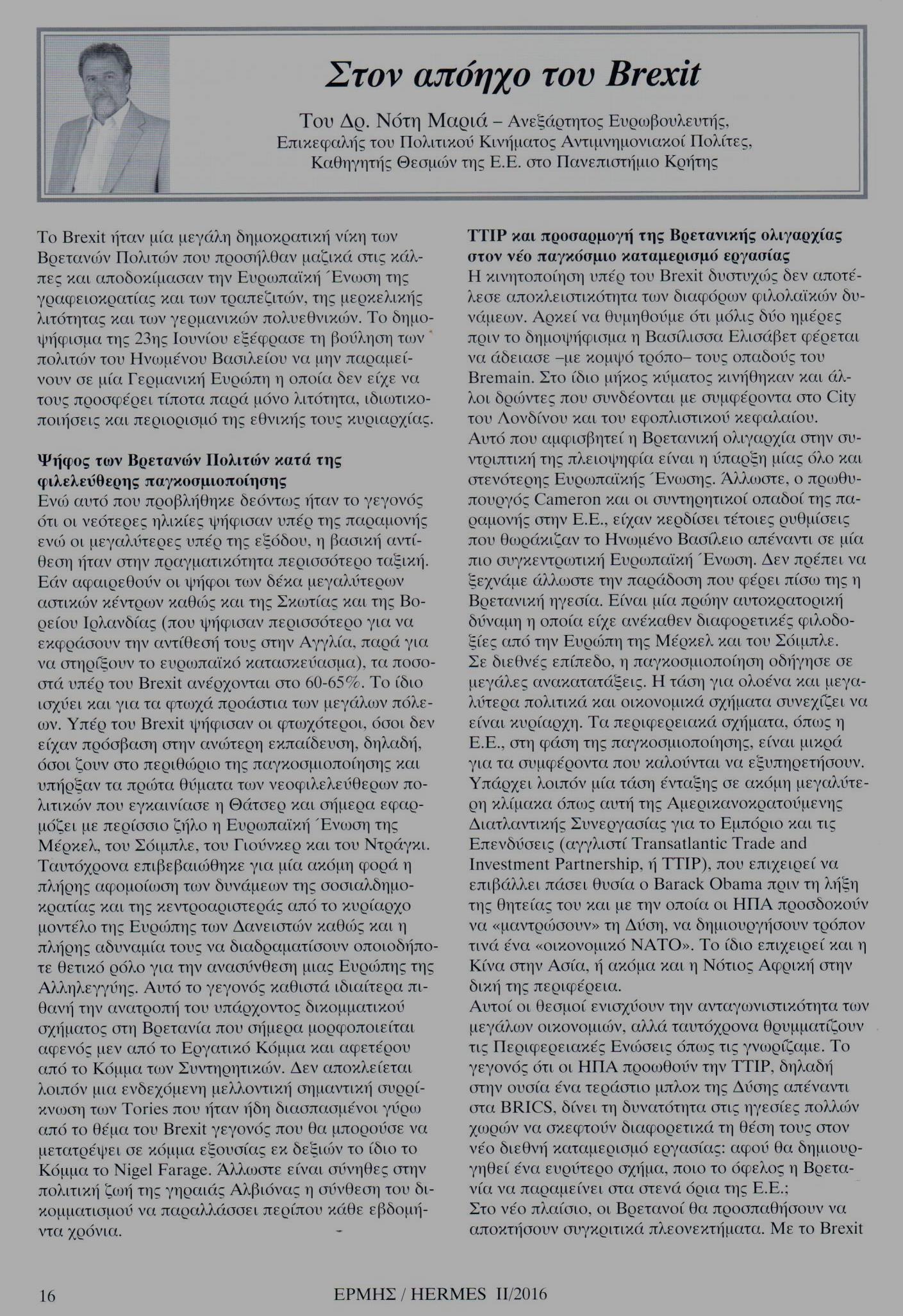 Έγραψαν: «ΕΡΜΗΣ II» 2016 (Στον απόηχο του Brexit)