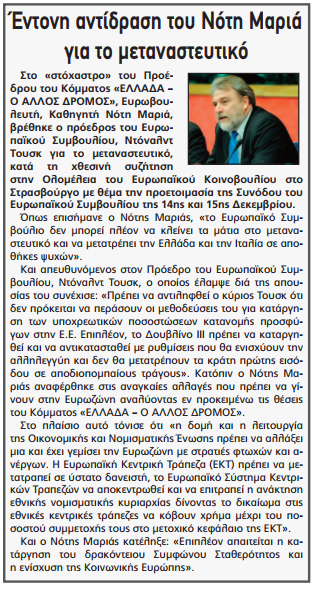 Έγραψαν «Λαμιακός Τύπος» 14-12-2017 (Έντονη αντίδραση του Νότη Μαριά για το μεταναστευτικό)