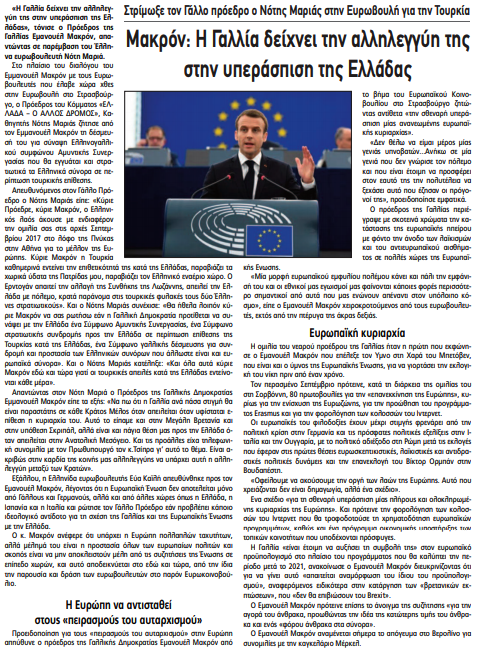 Έγραψαν: «Λαμιακός Τύπος» 18-4-2018 Στρίμωξε τον Γάλλο πρόεδρο ο Νότης Μαριάς στην Ευρωβουλή για την Τουρκία