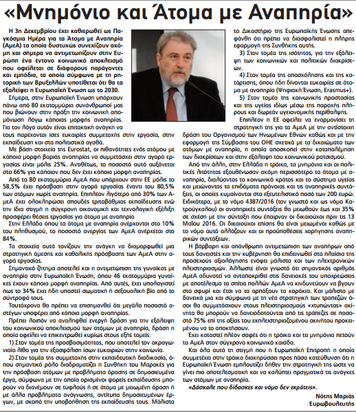Έγραψαν: «Λαμιακός Τύπος» 5-12-2017 (Μνημόνιο και Άτομα με Αναπηρία)