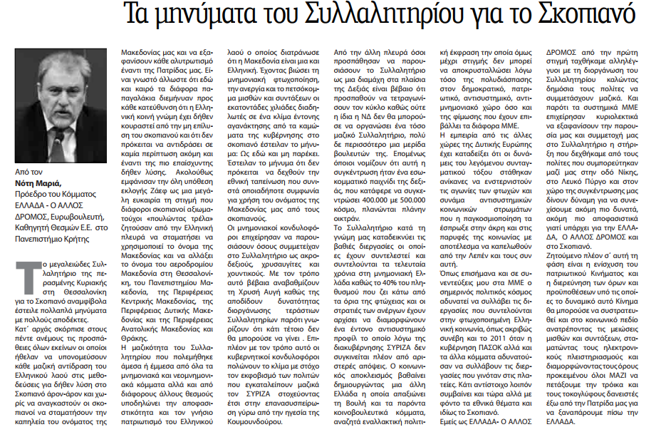 Αθήνα, 9/4/2019 ΔΕΛΤΙΟ ΤΥΠΟΥ Νότης Μαριάς από τις Σέρρες: Η Ελλάδα θα...