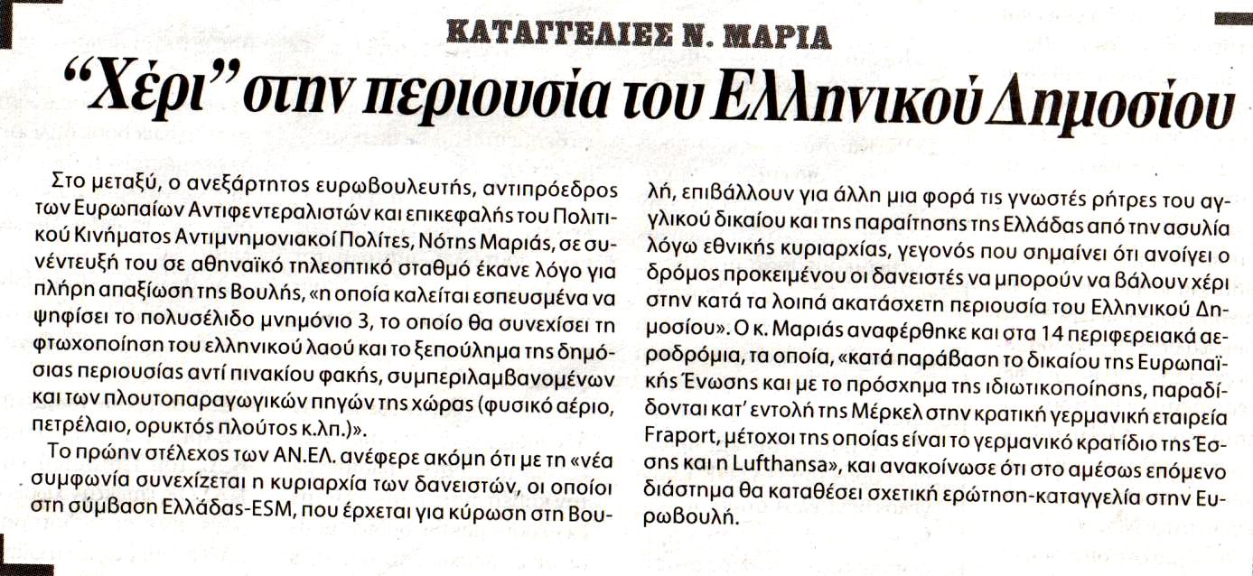 Έγραψαν: «korinthosnews.gr» 11/4/2019 (Την Κόρινθο επισκέφθηκε ο Πρόεδρος του Κόμματος «ΕΛΛΑΔΑ – Ο ΑΛΛΟΣ ΔΡΟΜΟΣ» Ευρωβουλευτής Ν. Μαριάς – Video)