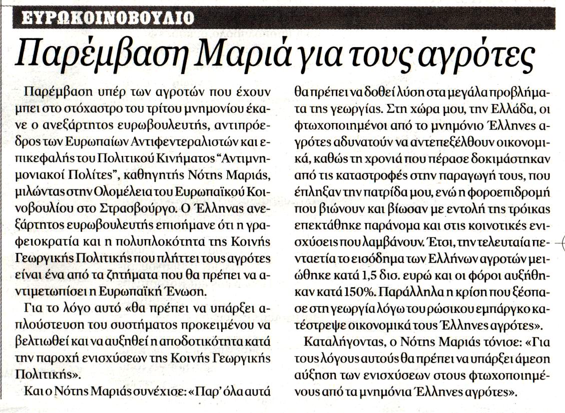 Έγραψαν: Νέα Κρήτη 14-09-2015 (Παρέμβαση για τους αγρότες)