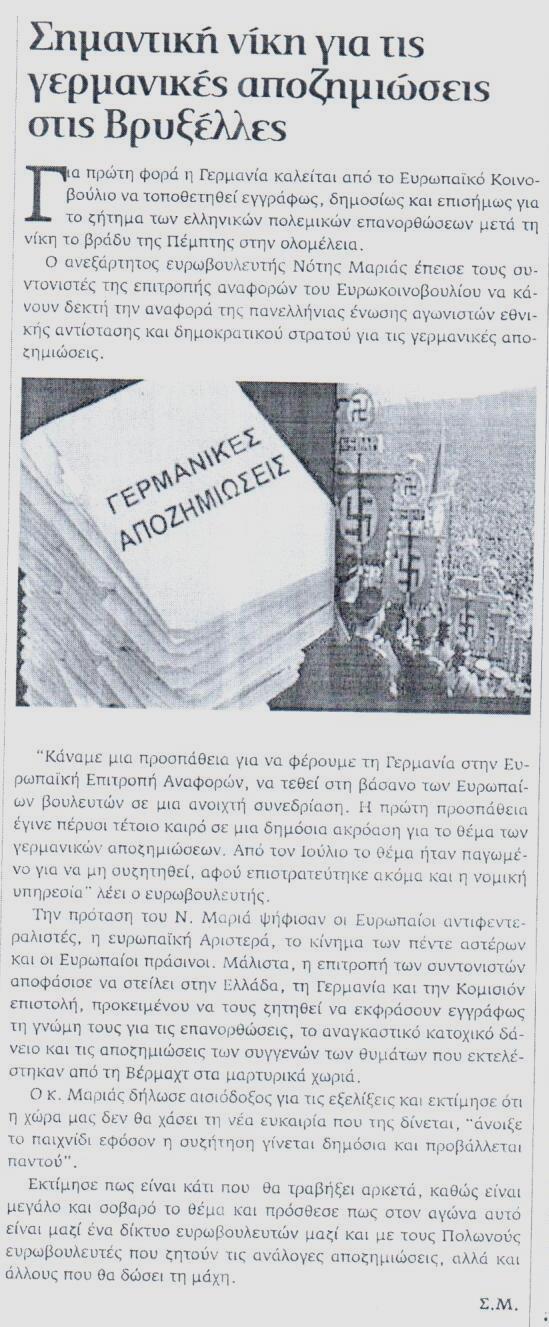 Έγραψαν: Ο χρόνος 20.10.2015 (Σημαντική νίκη για τις γερμανικές αποζημιώσεις στις Βρυξέλλες)