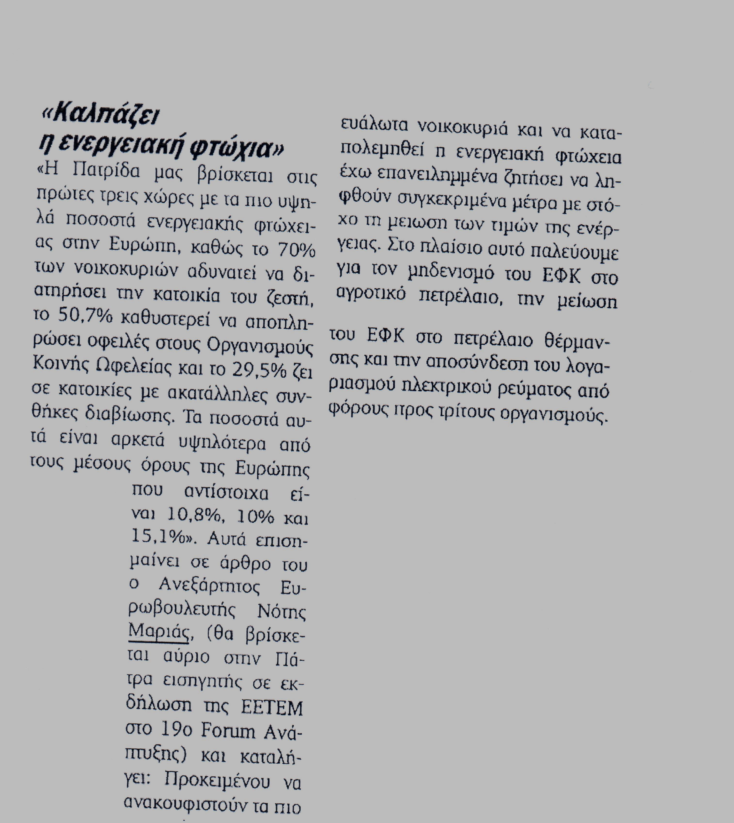 Έγραψαν: «Σύμβουλος» 11/11/2016 (ενεργειακή φτώχεια)