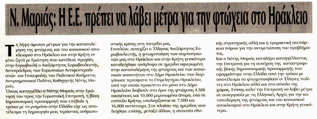 Αθήνα, 26/11/2019 ΔΕΛΤΙΟ ΤΥΠΟΥ Νότης Μαριάς από το Γοργοπόταμο: Άμεση διεκδίκηση των...