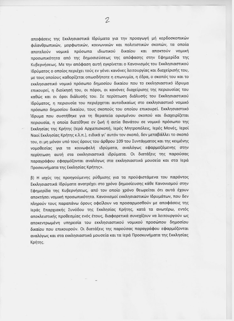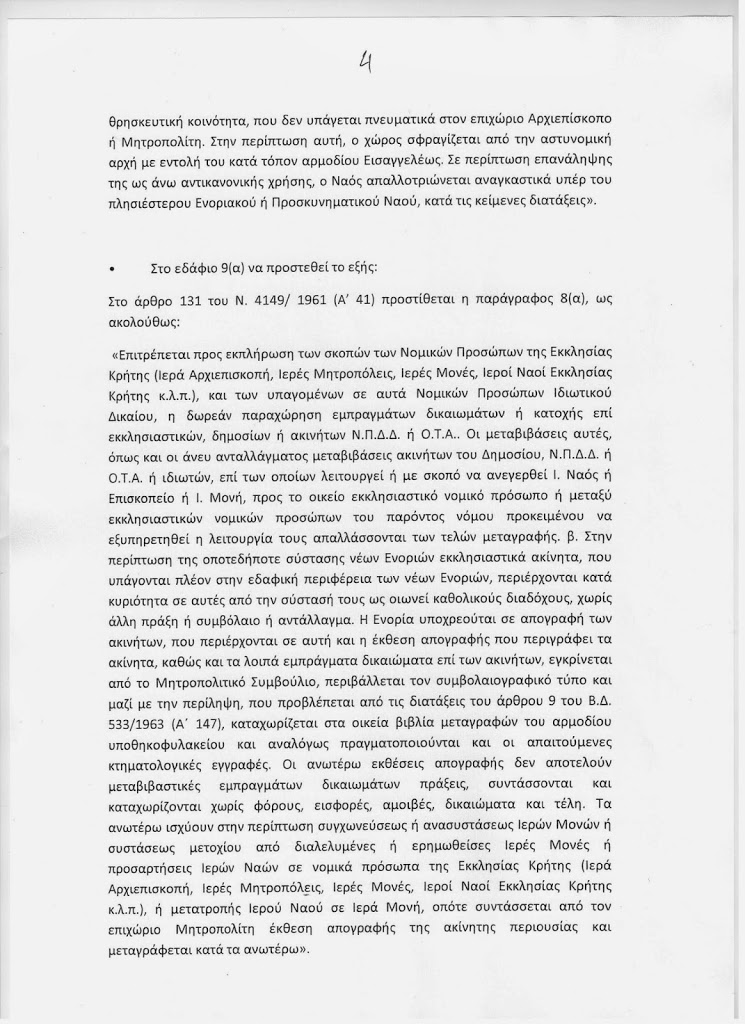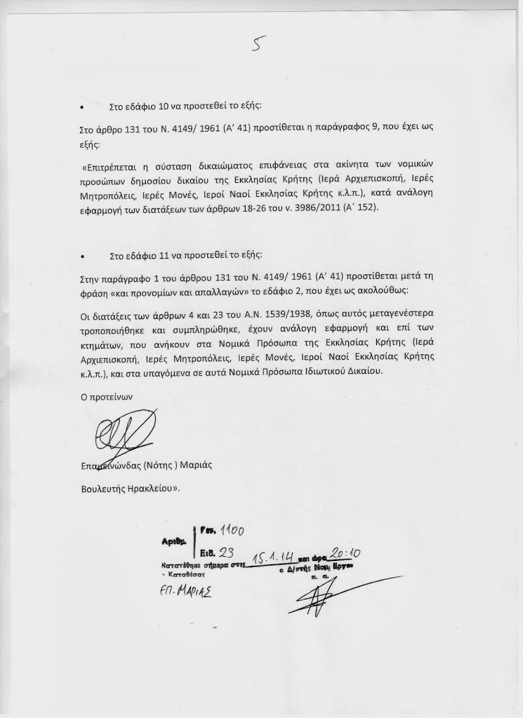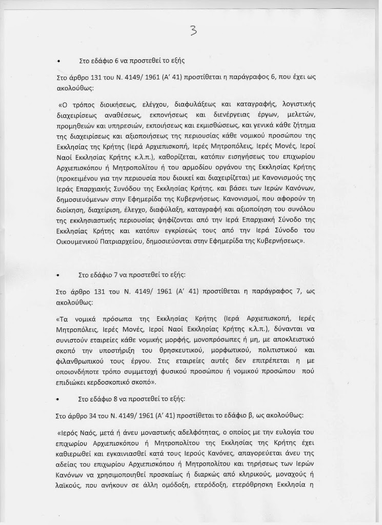 Στην τροπολογία-προσθήκη που κατέθεσε ο κ. Μαριάς περιλαμβάνονται όλες οι προταθείσες από το Νομικό Σύμβουλο της Ιεράς Επαρχιακής Συνόδου της Εκκλησίας της Κρήτης σχετικές ρυθμίσεις.