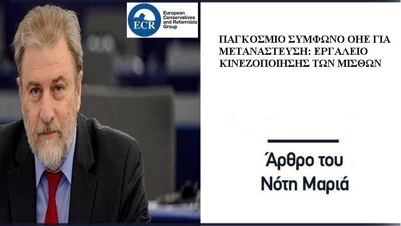 Επισημαίνεται ότι είχα διαφωνήσει με την υπογραφή του Παγκοσμίου Συμφώνου του ΟΗΕ για τη Μετανάστευση μιλώντας στην Ολομέλεια του Ευρωπαϊκού Κοινοβουλίου στο Στρασβούργο την Τρίτη 13/11/2018.