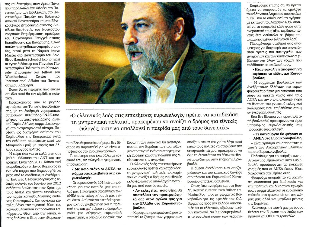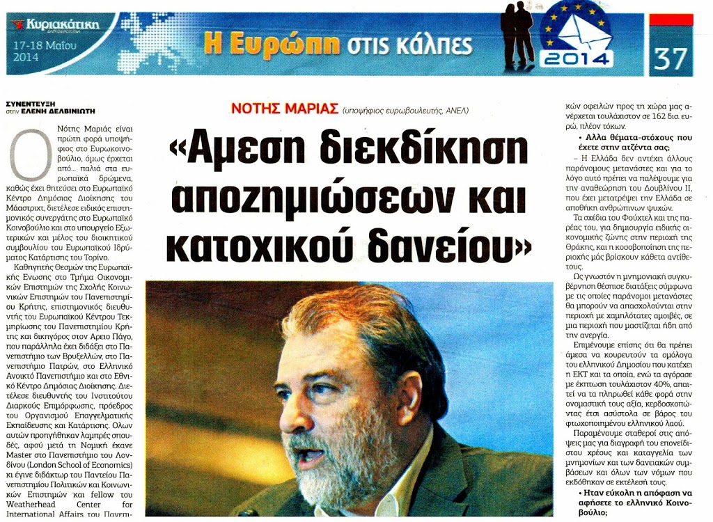 ΣΥΝΕΝΤΕΥΞΗ ΤΟΥ ΝΟΤΗ ΜΑΡΙΑ ΣΤΗΝ ΚΥΡΙΑΚΑΤΙΚΗ ΕΛΕΥΘΕΡΟΤΥΠΙΑ 17-18.05.2014