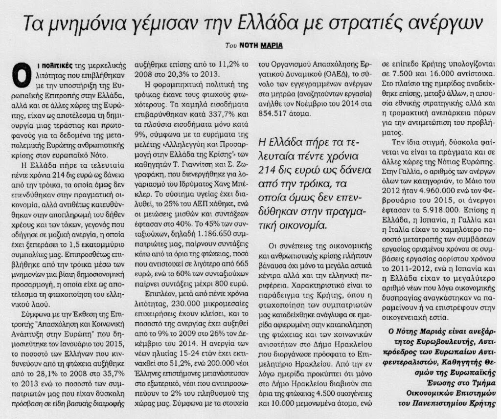 Άρθρο του Νότη Μαριά στην KontraNews της Κυριακής που κυκλοφόρησε στις 11.4.2015