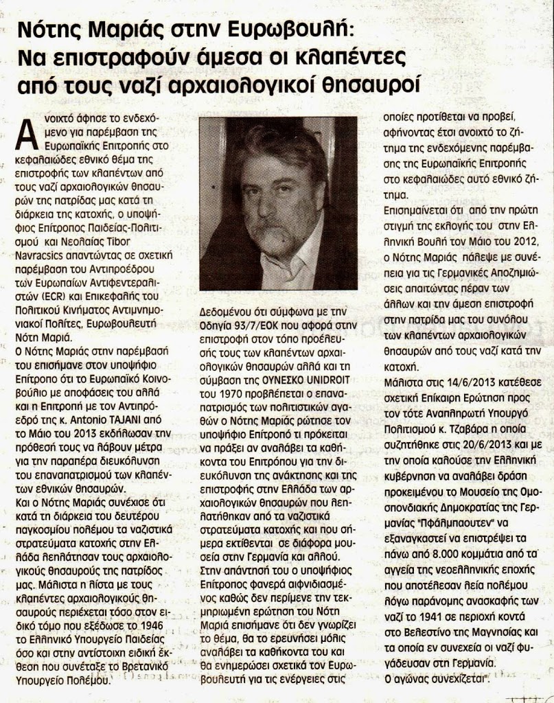 Σύμφωνα με στοιχεία που αναγράφονται στο Περιοδικό Βουλή και Ευρωβουλή (Τεύχος-Σεπτέμβριος 2014)...