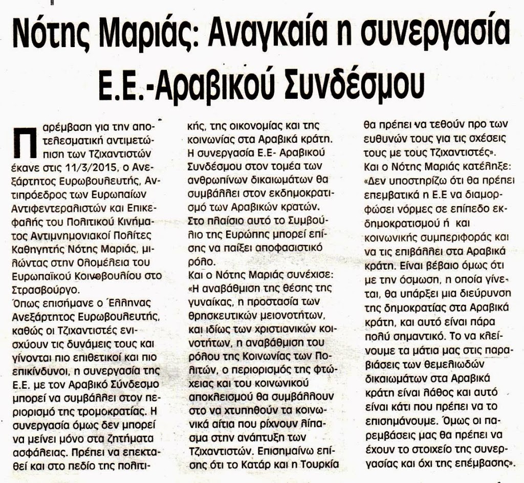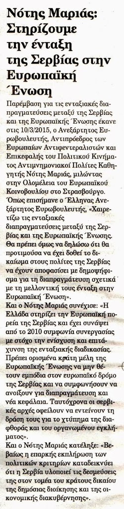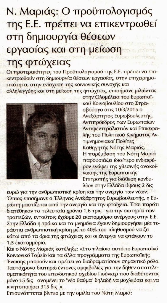 Συνέντευξη στον τηλεοπτικό σταθμό Kontra στις 20/3/2015 του Νότη Μαριά για το...