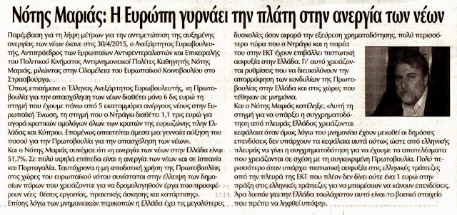 Άρθρο του Νότη Μαριά στην KontraNews της Κυριακής 10.5.2015 Σχέδιο για άσκηση...