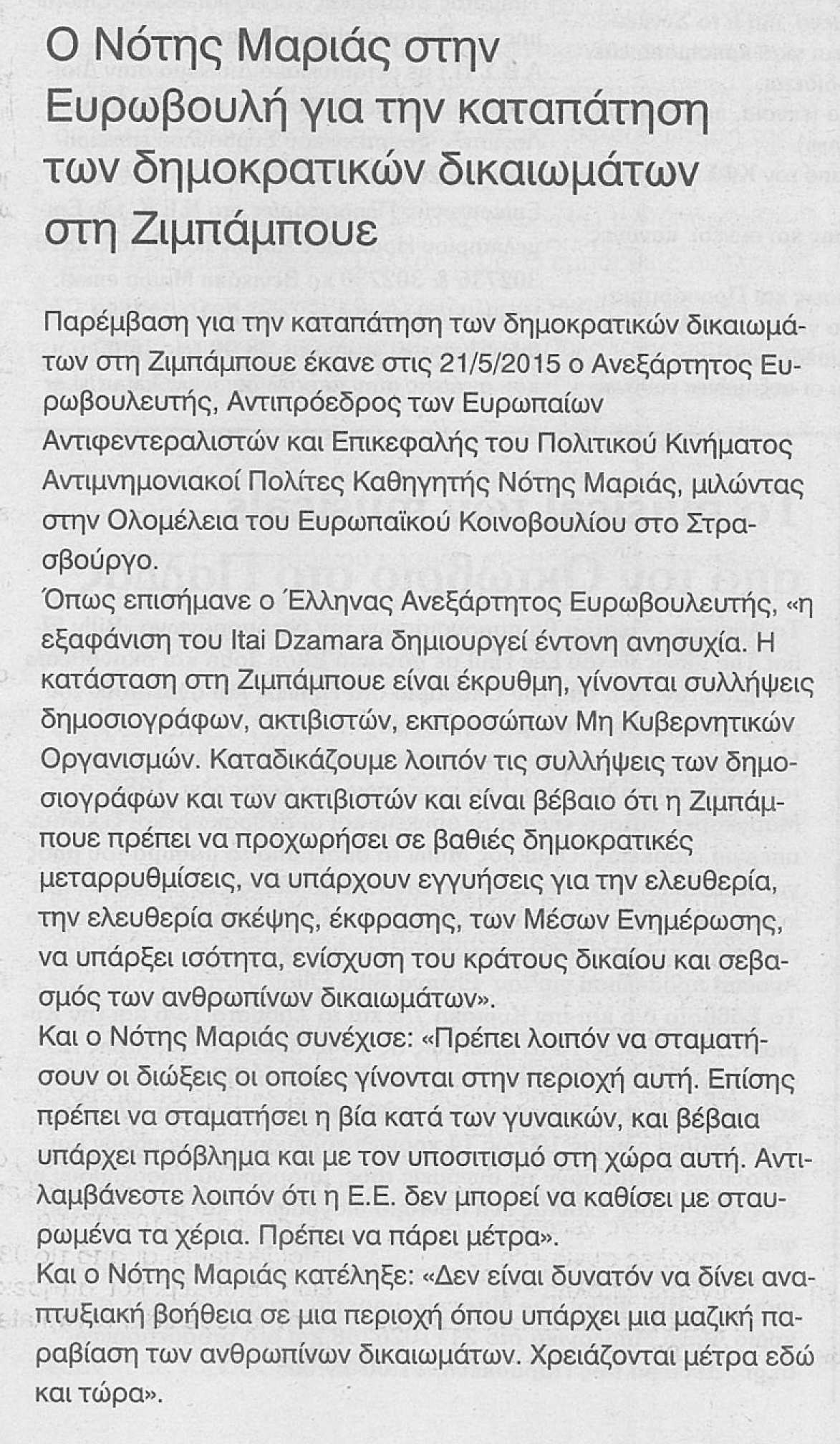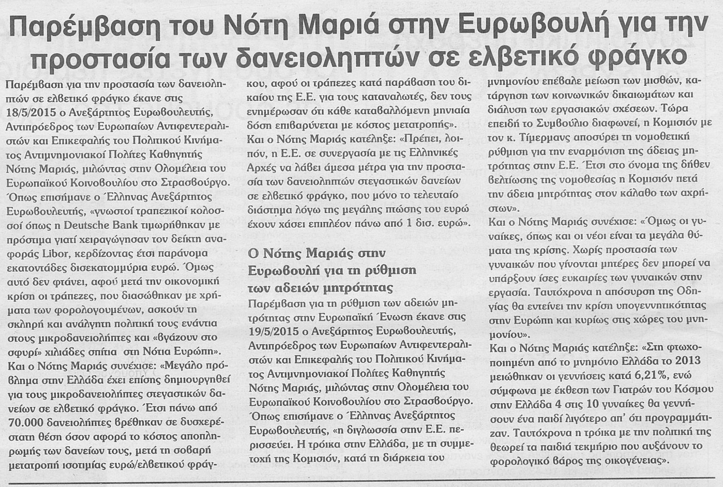 Αθήνα, 25/5/2015. ΔΕΛΤΙΟ ΤΥΠΟΥ/ΒΙΝΤΕΟ Συνέντευξη του Ανεξάρτητου Ευρωβουλευτή, Αντιπροέδρου των Ευρωπαίων Αντιφεντεραλιστών...