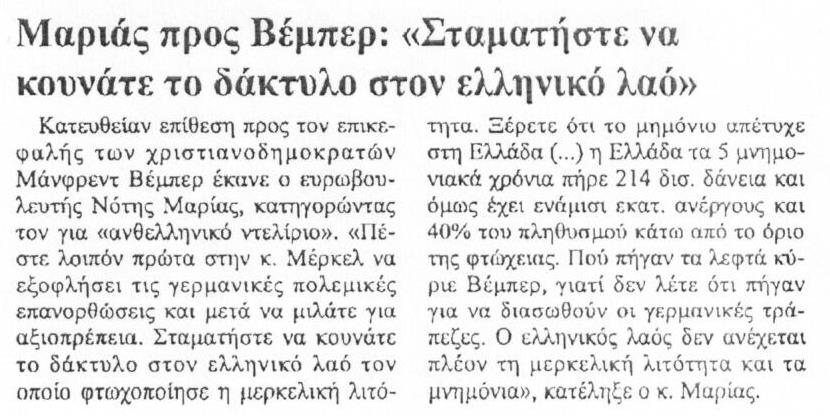 Ο Νότης Μαριάς στην ΕΡΤ3 για την κόντρα του με τον Μ. Βέμπερ στην Ευρωβουλή. 0