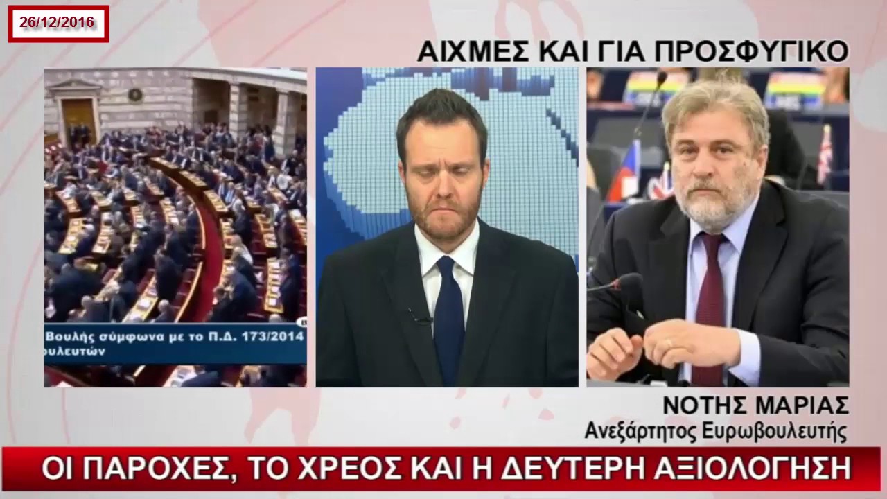 Συνέντευξη του Ανεξάρτητου Ευρωβουλευτή Καθηγητή Νότη Μαριά στις 21/12/2016 στον τηλεοπτικό σταθμό...