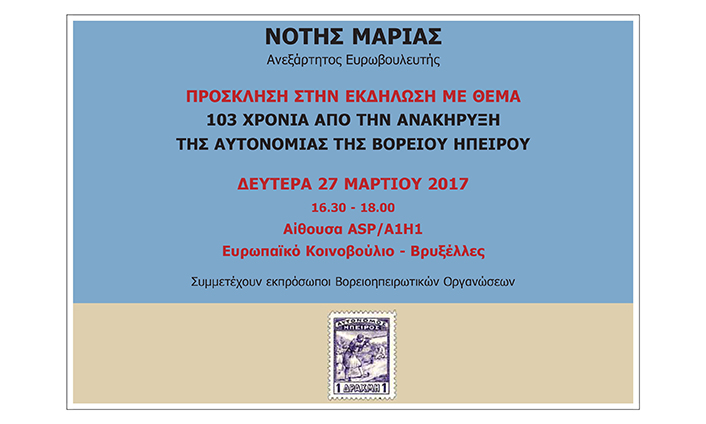 Βρυξέλλες, 23/3/2017. Εκδήλωση για την 103η επέτειο της Ανακήρυξης της Αυτονομίας της...